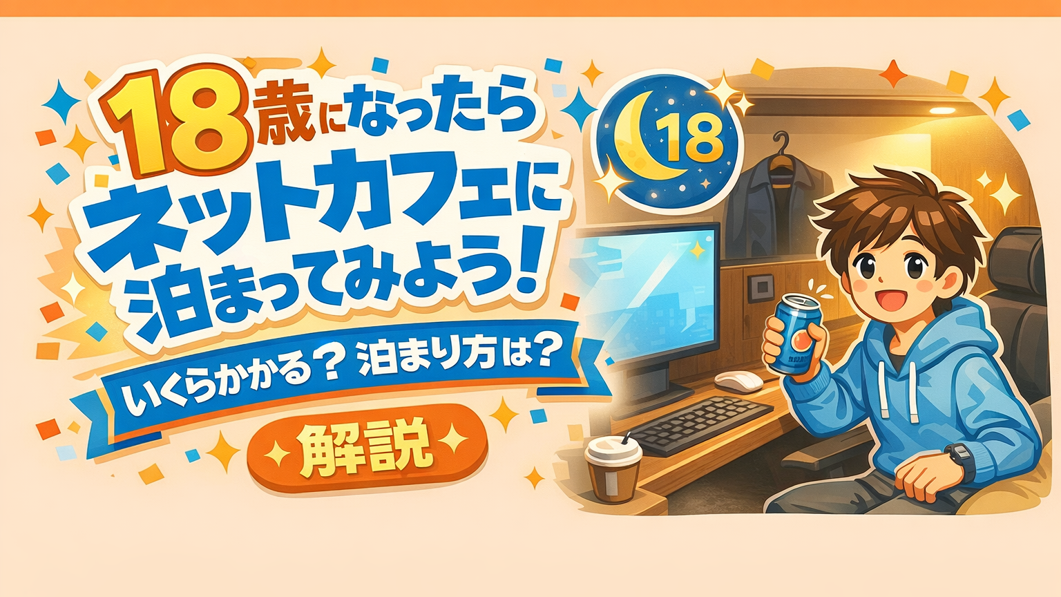 18歳になるとネットカフェの宿泊は基本的に可能になるが、利用可否は「18歳かどうか」ではなく「高校生かどうか」で判断される場合が多い。