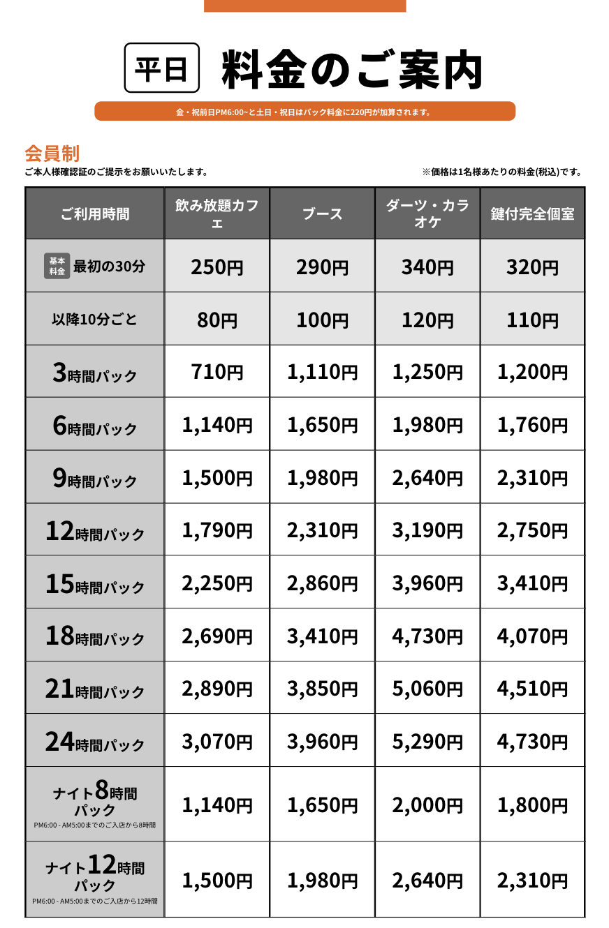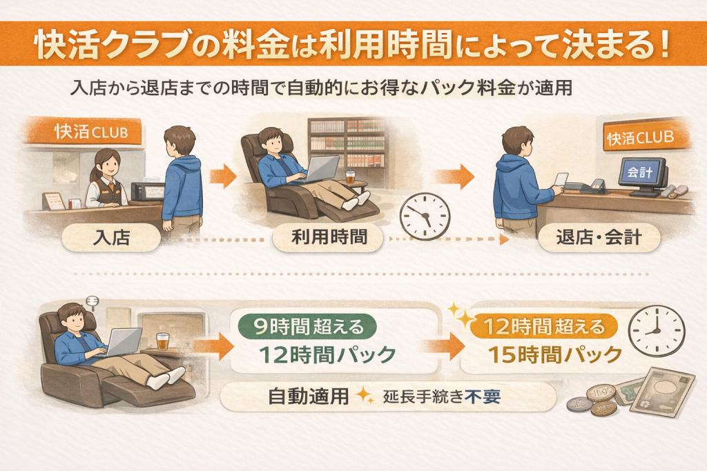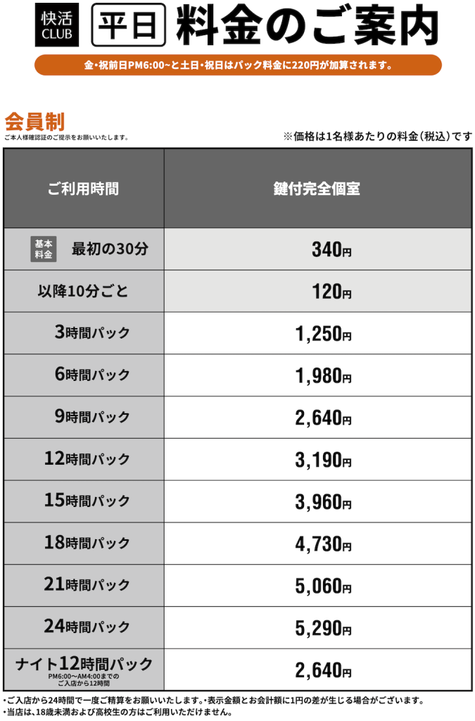 快活クラブの料金は、快活クラブを利用した時間によって異なります。