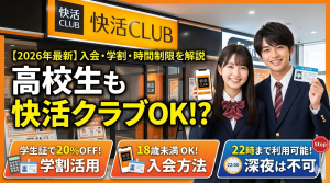 高校在学中は深夜利用が制限されることがあり、卒業後であれば問題なく利用できるケースが一般的。宿泊はナイトパックを利用するのが主流で、料金は6〜9時間で約1,500円〜3,000円程度と安価。